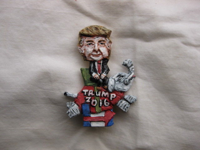 Title (ebay affiliate link): Donald Trump riding Elephant over Hillary Logo 2016 Presidential Campaign Novelt