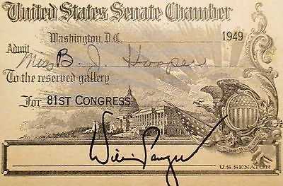 Title (ebay affiliate link): 1949 U.S. Senate Chamber N.D. Forced-Out Governor Wild Bill Langer Gallery Pass!