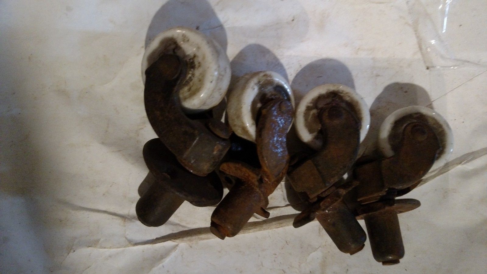vintage metal porcelain casters set of 4