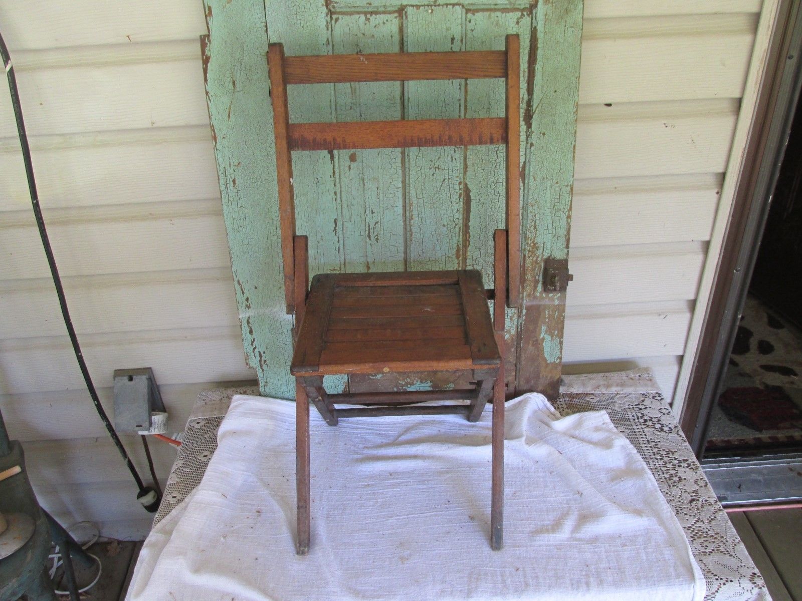 ANTIQUE CHILDS SLATED WOODEN FOLDING CHAIR