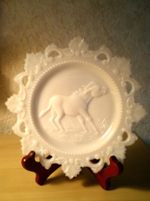 VINTAGE EMBOSSED MILKGLASS PLATE~STUBBORN MULE~DONKEY