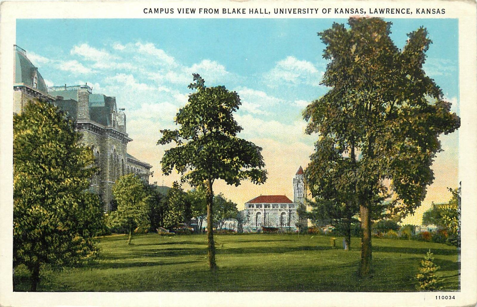 Lawrence, Kansas, KS, Univ. of KS, View from Blake Hall, Linen Postcard PC a2873
