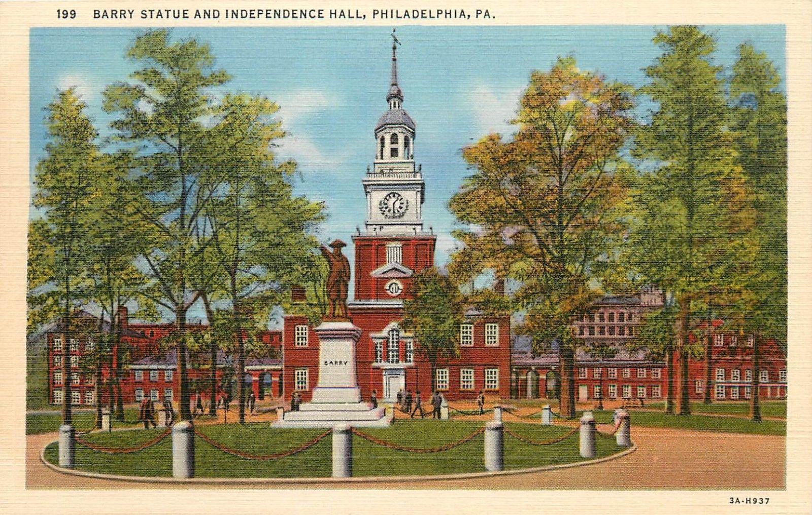 Philadelphia, Pennsylvania, PA, Barry Statue, Ind. Hall, Linen Vtg Postcard a765