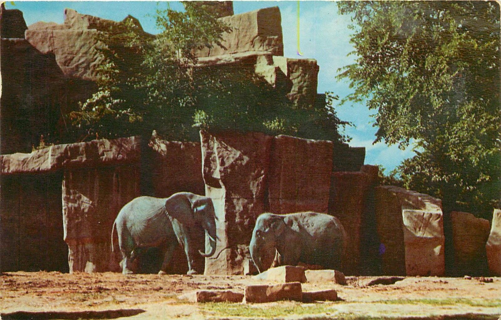 Chicago, Illinois, IL, Zoo Park at Brookfield, Elephants, 1956 Postcard a2737