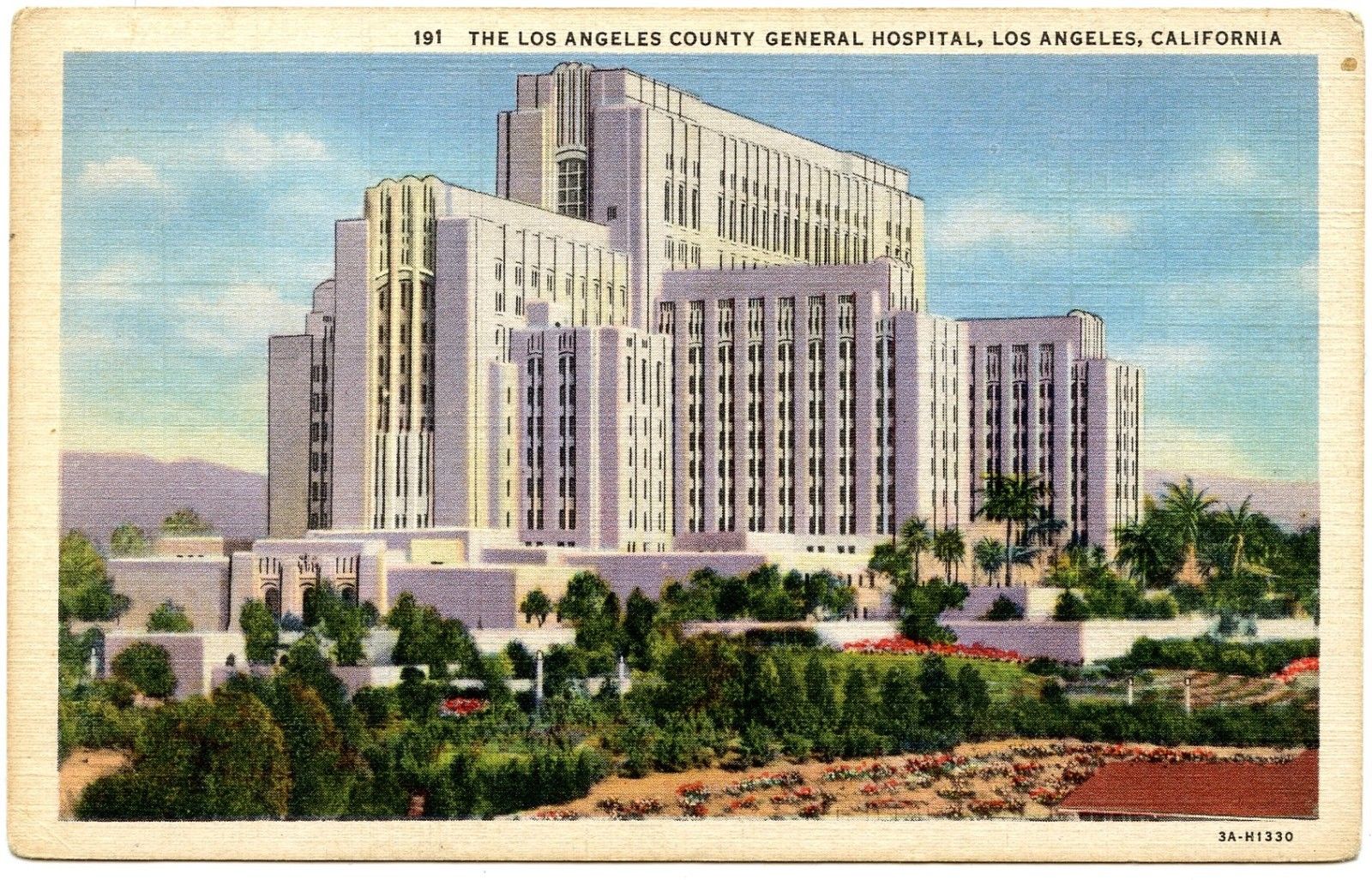 Title (ebay affiliate link): B4504 Los Angeles County General Hospital CA 1933 Teich Linen Postcard 3A-H1330