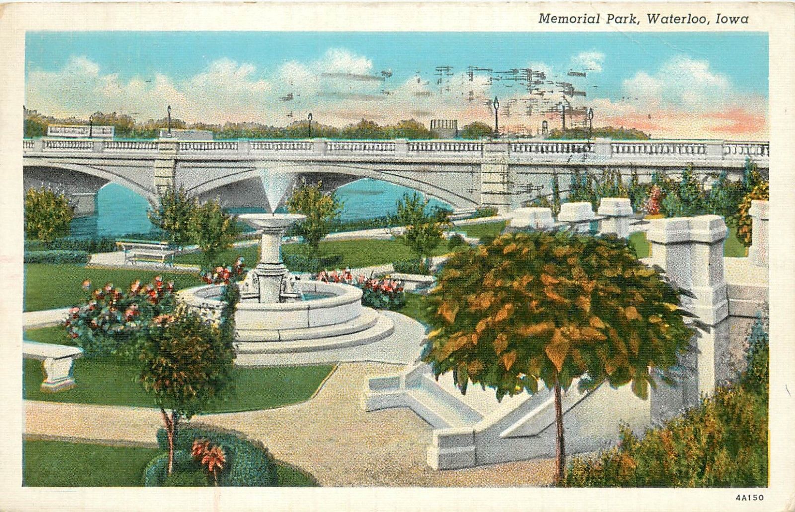 Waterloo, Iowa, IA, Memorial Park, 1940 Linen Vintage Postcard Old PC a2826