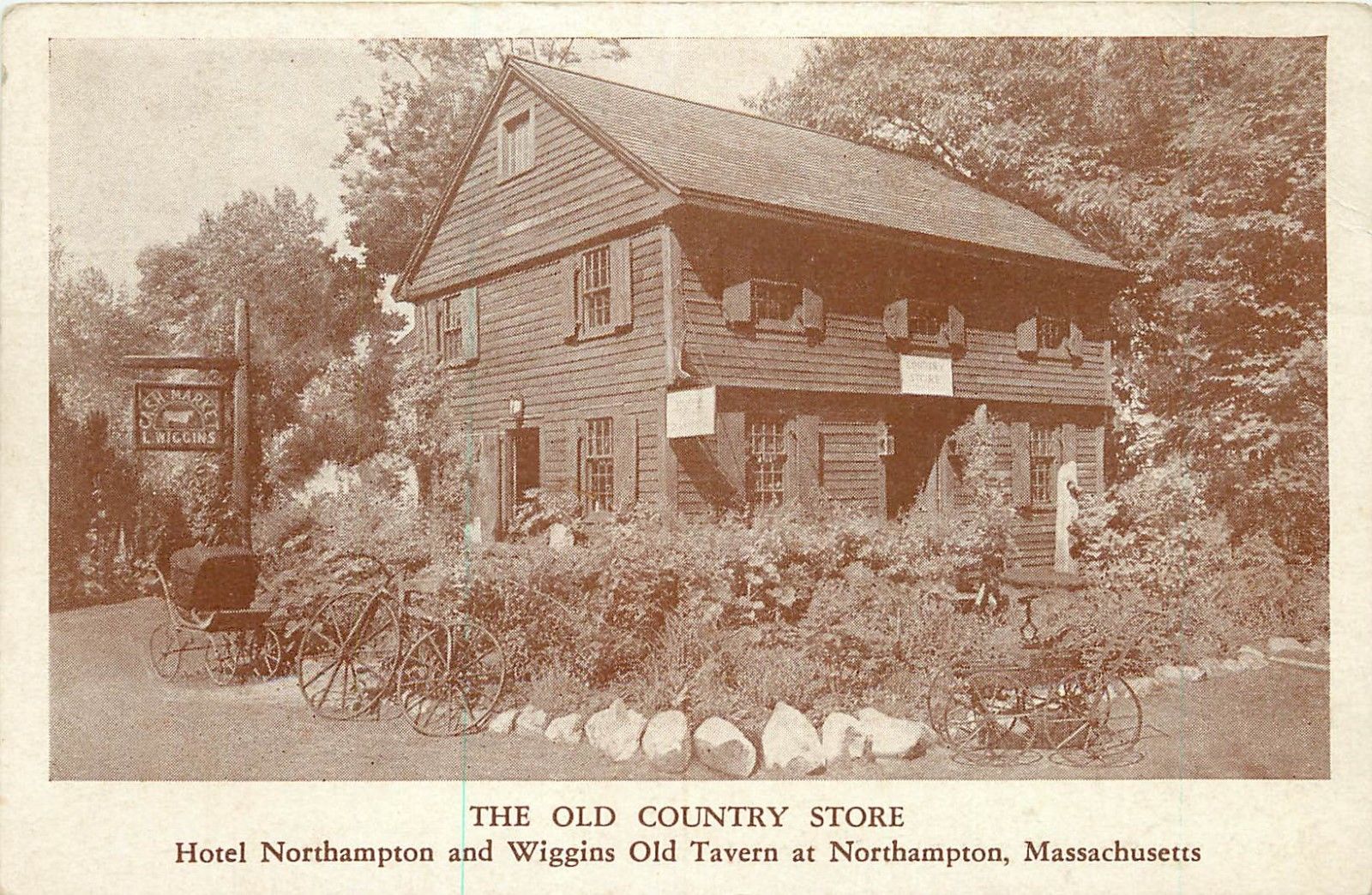 Northampton, Mass, MA, Wiggins Old Tavern, The Old Country Store,Postcard a1486