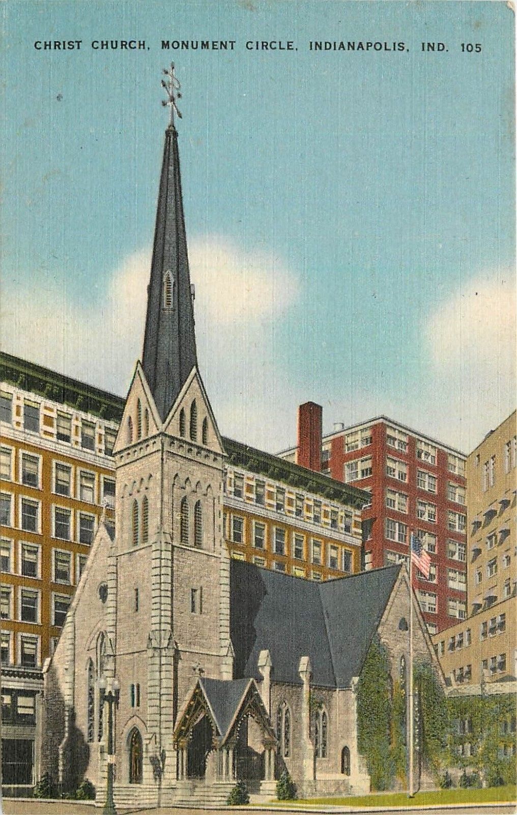 Indianapolis, Indiana, IN, Christ Church, Monument Circle, Linen Postcard a2805