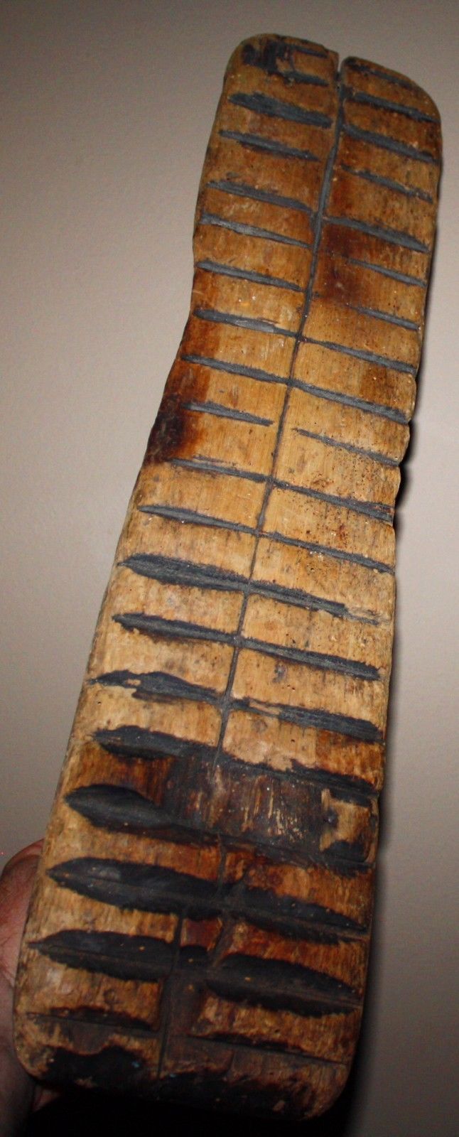 Antique Country Primitive Carved Wooden Mangle Scrub Board, 1800's Fiber Tool