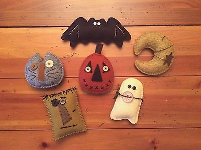 WOOL FELT PENNY RUG HALLOWEEN ORNIES BOWL FILLERS BAT GHOST MOON FRANKENSTEIN