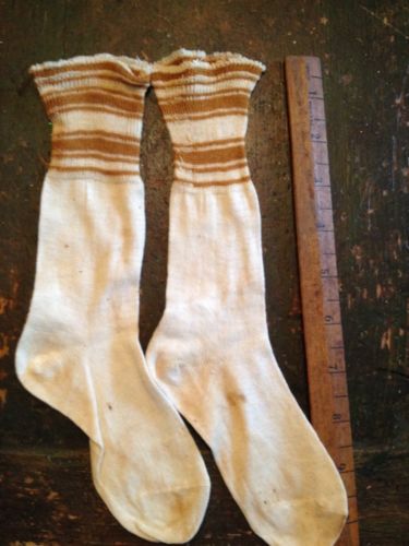 Title (ebay affiliate link): Primitive Early Child's Stockings. Brown Stripe Cotton