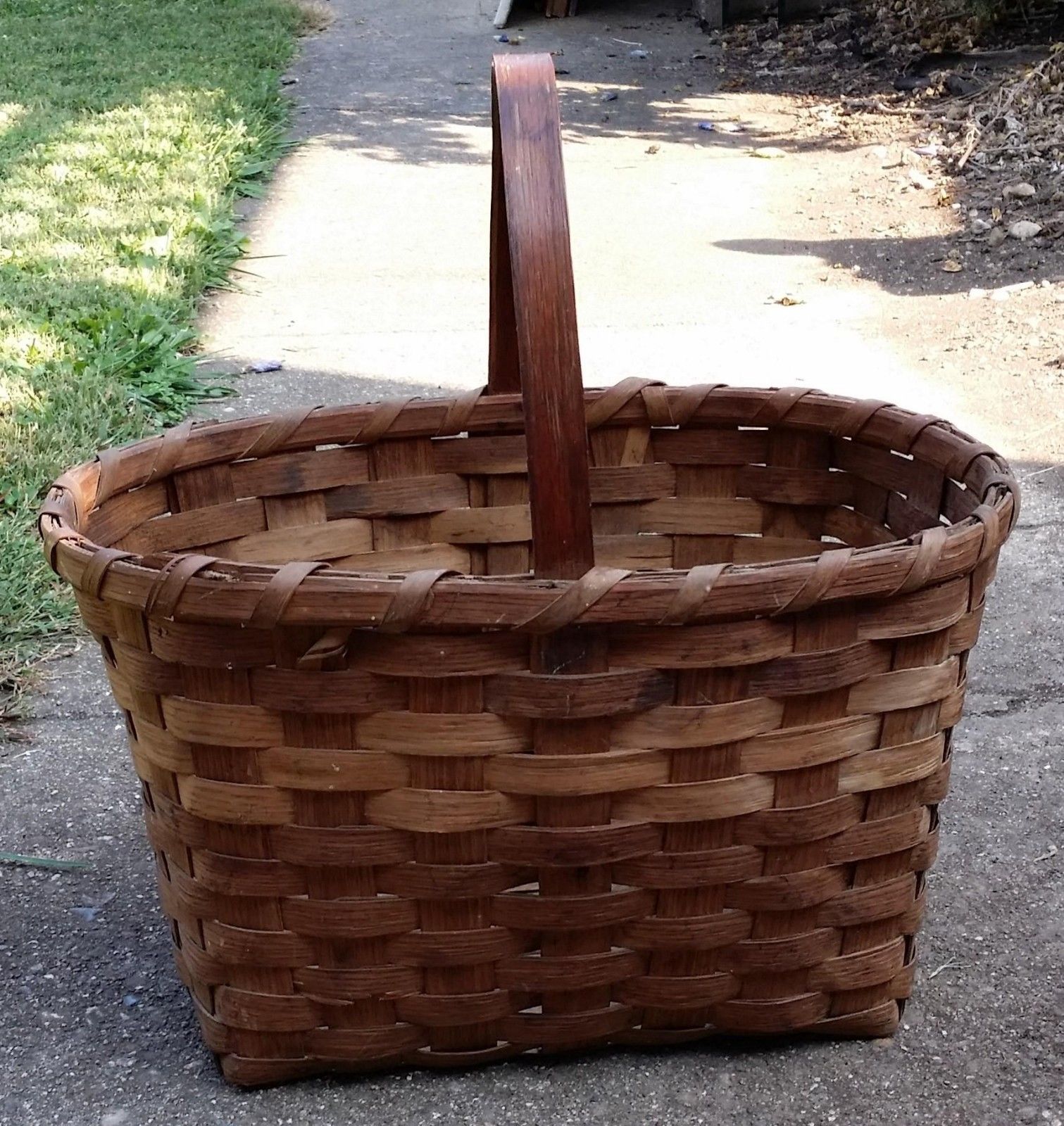 Title (ebay affiliate link): FINE Antique AMERICAN COUNTRY Market BASKET Splint w HANDLE, Chain Weave