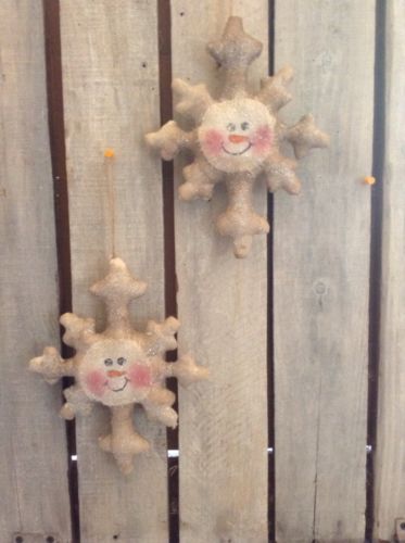 2 Primitive Grungy Snowman Snowflakes Ornies