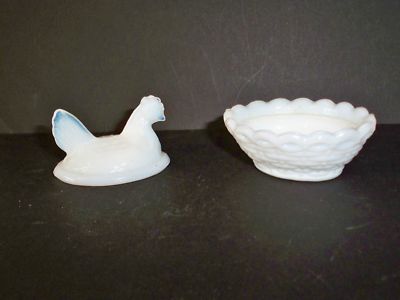 CHICKEN IN A BASKET MILK GLASS MINIATURE CUTE!!!!
