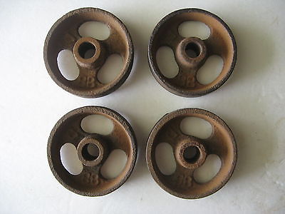 Title (ebay affiliate link): 4 Vintage 2 1/2" Rusty Cast Iron Round Wheels Rollers Steampunk Cart Barn Find