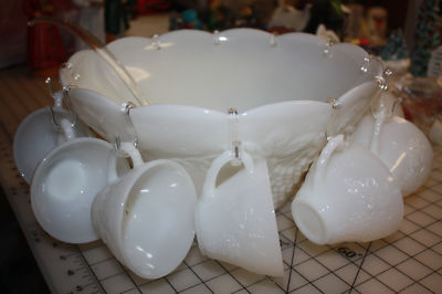 24 pc set of Milk Glass Punch Bowl Set Grape Pattern