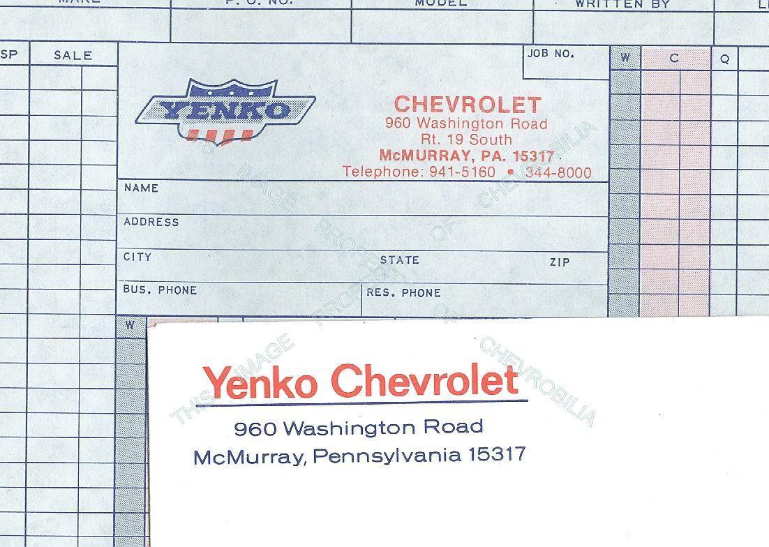 70s YENKO CHEVROLET NOS Dealer Repair Order, Envelope CAMARO Nova Deuce CORVETTE