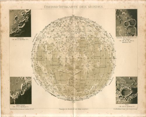Title (ebay affiliate link): 1895 MOON PLANET OVERVIEW LANDSCAPE CRATERS Antique Lithograph Map