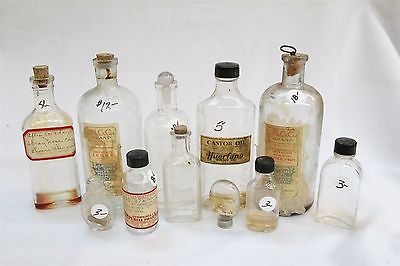 C Vintage Old Medicine Apothecary Bottle Glass Lot #3 11pcs MGC Pharmacy