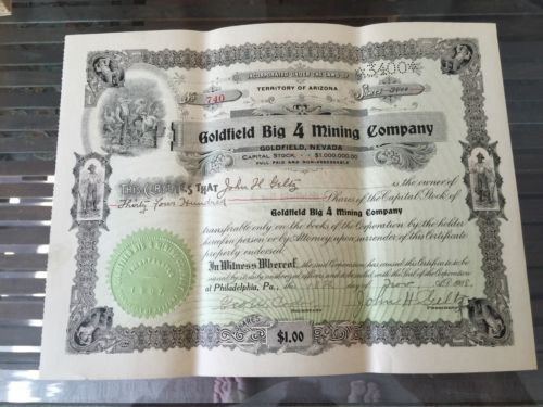 Title (ebay affiliate link): Vintage 1908 " Goldfield Nevada " Mining Stock Certificate