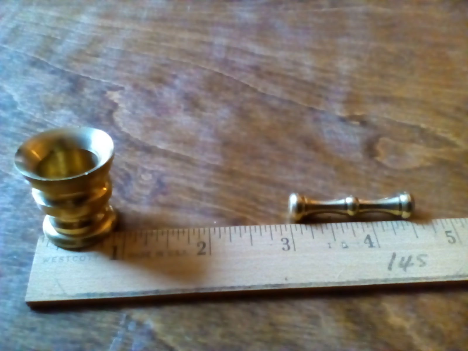 Title (ebay affiliate link): VINTAGE MINIATURE TURNED BRASS MORTAR AND PESTLE GREAT FOR DISPLAY