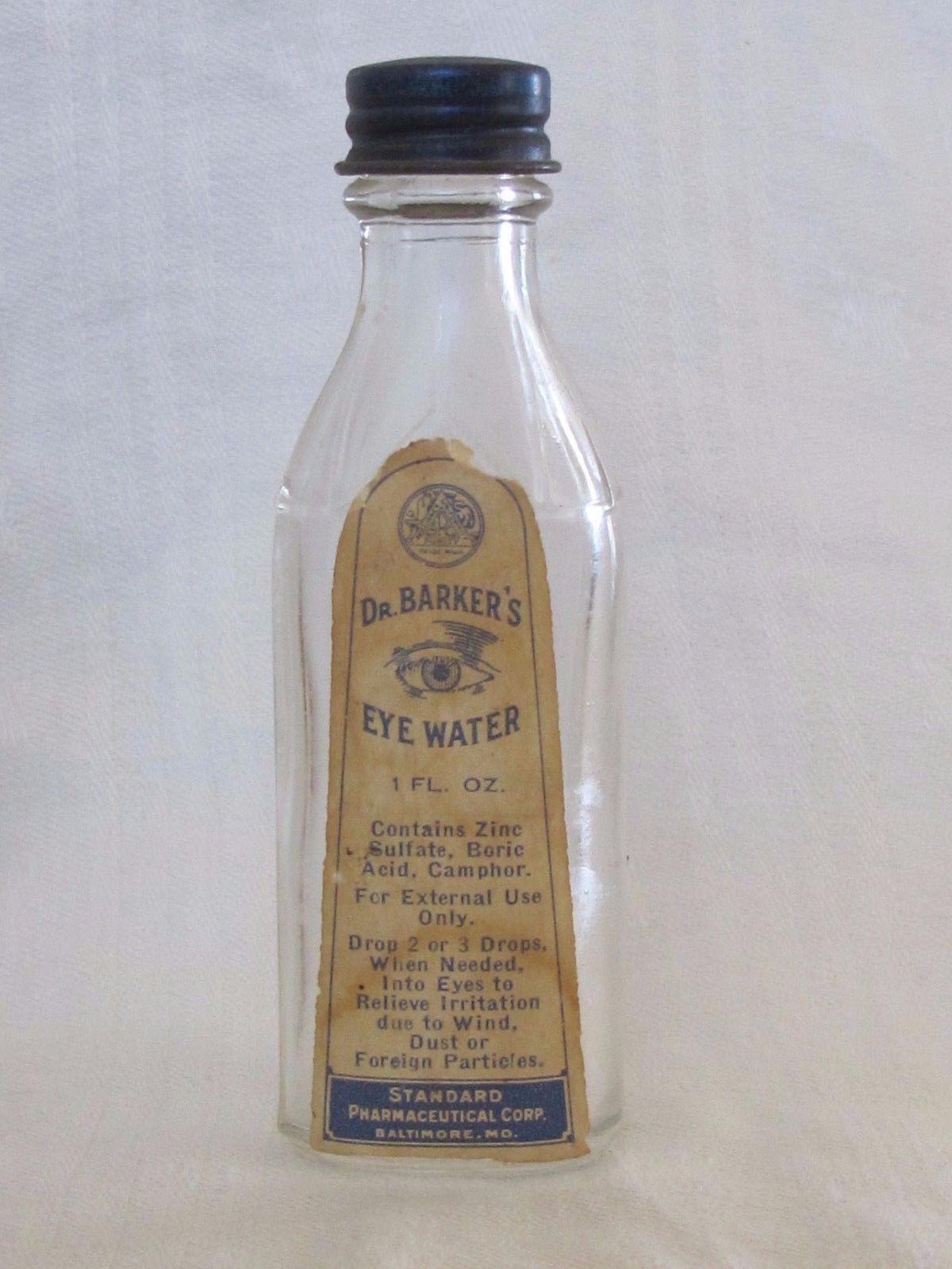 Title (ebay affiliate link): Vintage Antique Dr. Barker's Clear Glass Bottle Eye Water & Label 4" Baltimore