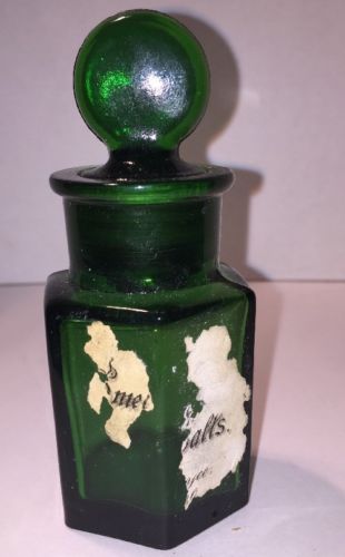 Title (ebay affiliate link): Antique Smelling Salts Green Glass Lollipop Lid Some Label Intact