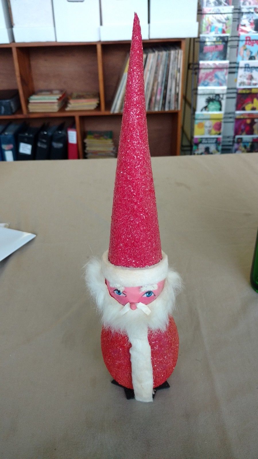 Title (ebay affiliate link): VINTAGE POINTED HEAD SANTA CANDY CONTAINER PAPIER MACHE WEST GERMANY
