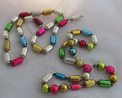 Antique Christmas Glass Beaded Garland Multi Color Tubes & Tubes & Balls x2