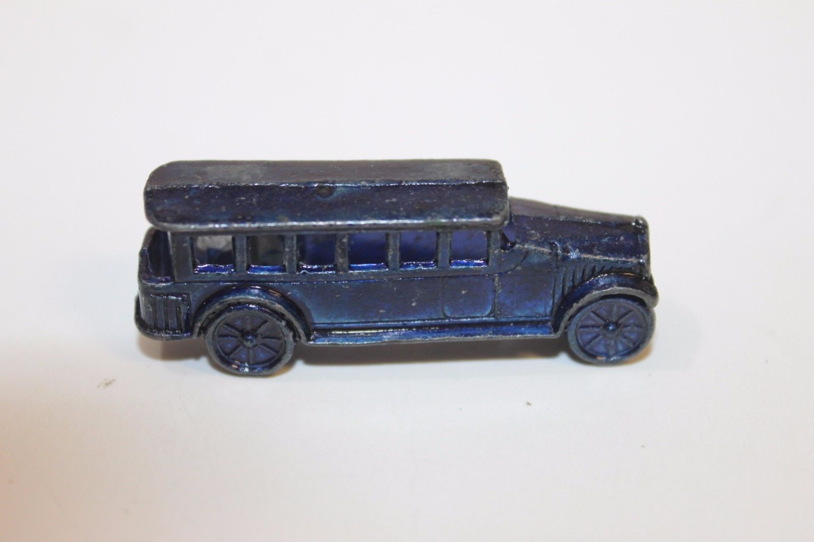 VINTAGE CRACKER JACK TOY PRIZE PREMIUM 1 3/4" BLUE METAL BUS CAR TOOTSIETOY