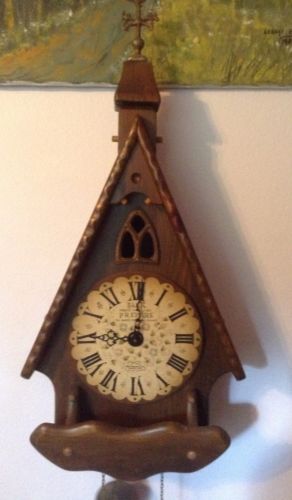 Title (ebay affiliate link): Antique New England Cathedral A-Frame 8 Day Wall Clock w/Weights~Estate