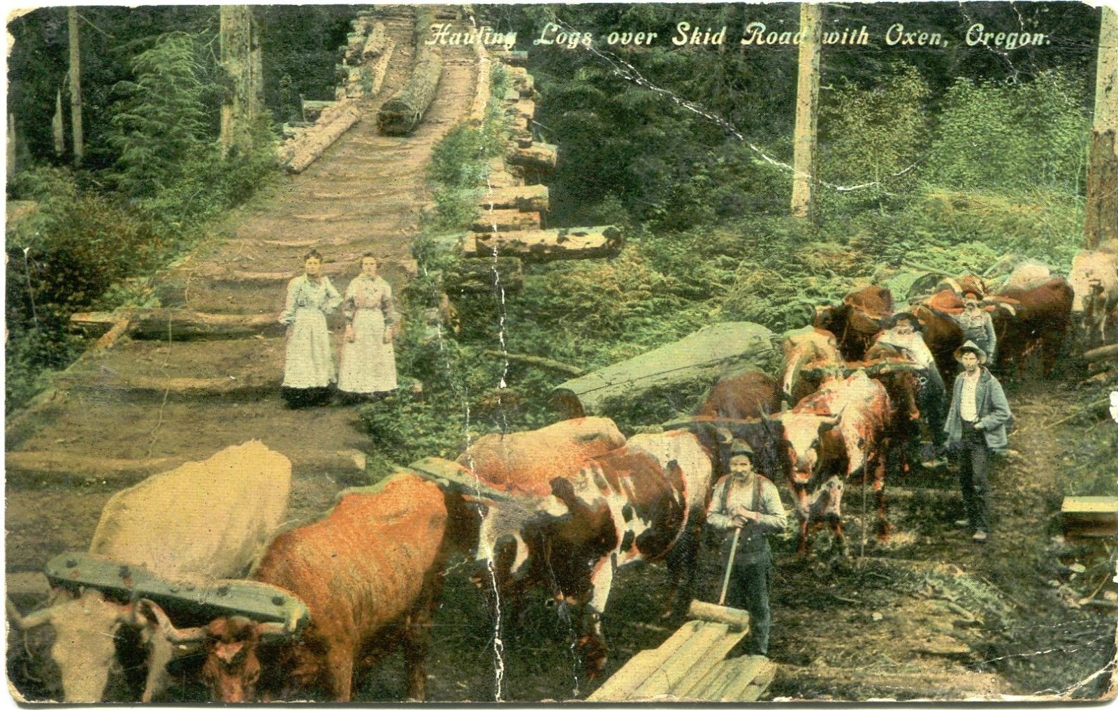 Hauling Logs Over Skid Road With Oxen, Oregon