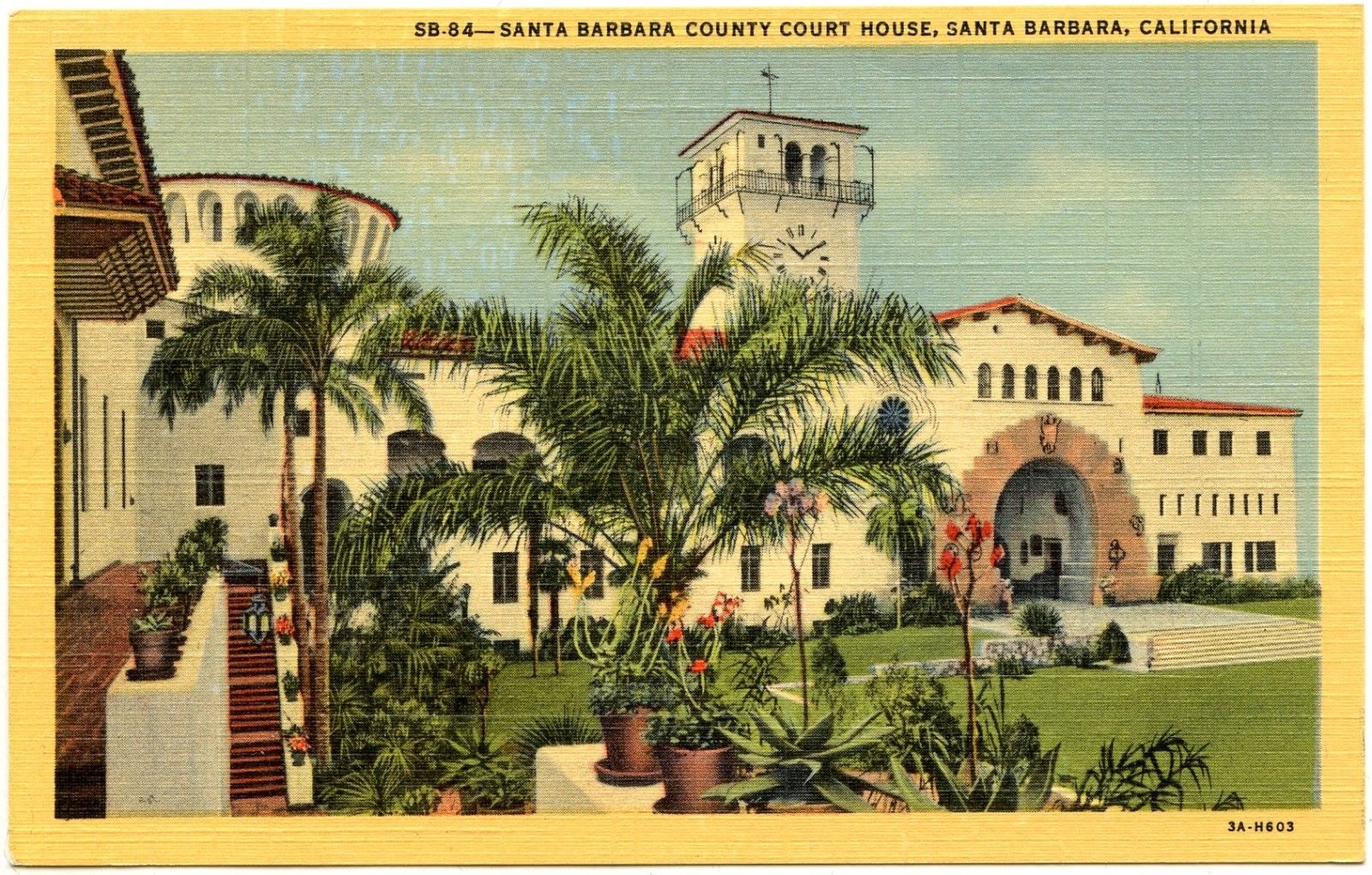 Title (ebay affiliate link): B4507 Santa Barbara County Court House CA - 1933 Teich Linen Postcard # 3A-H603