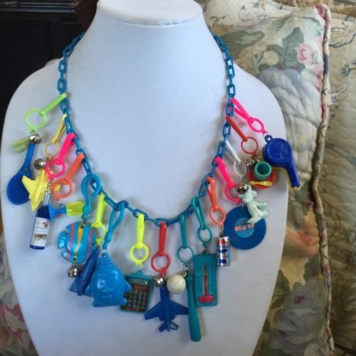 Title (ebay affiliate link): Vintage New 80's 1980 Plastic Bell Charm Necklace Retro Party 16 Mickey Fantasia