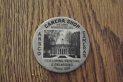 ANTIQUE POCKET MIRROR---ANSCO CAMERAS--MONMOUTH, ILL.