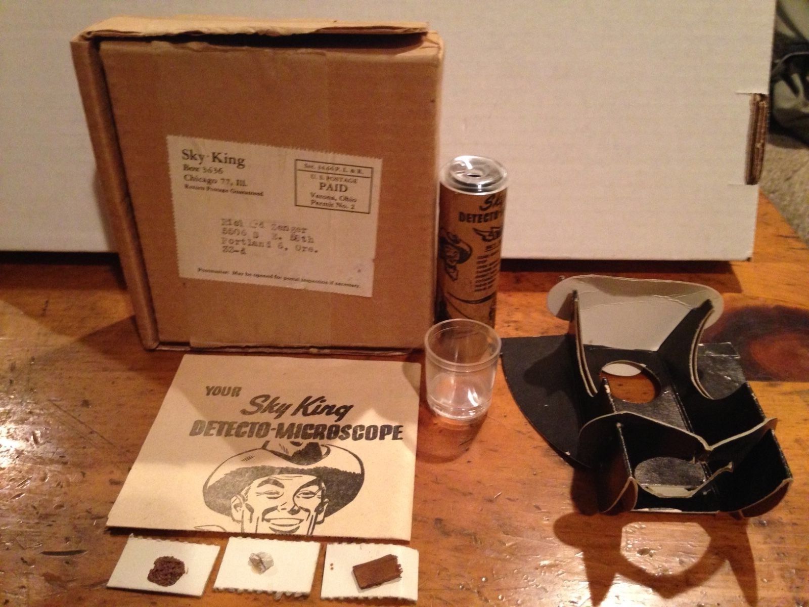 1940's Premium Sky King Detecto Microscope with instructions and Box /Mailer