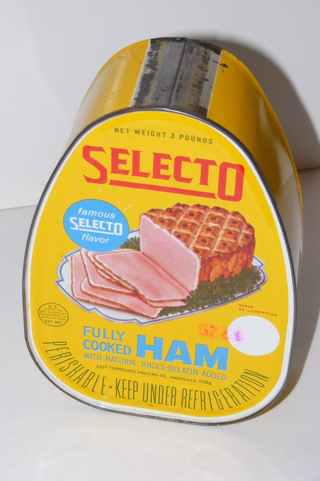 Title (ebay affiliate link): Vintage Selecto Canned Ham Tin Litho Advertising Tin East TN Packing Knoxville
