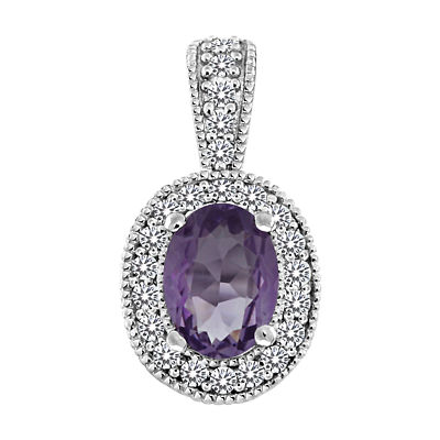 Genuine Amethyst Antique-Style Pendant Necklace Silver!