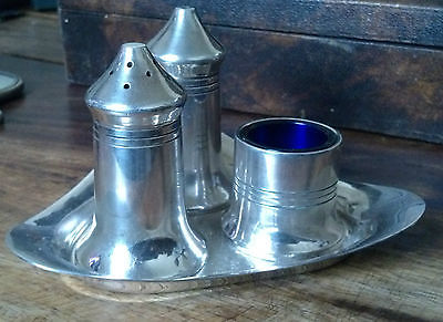 Chunky GARRARD & CO SILVER Plate CRUET - Mustard & Spoon, Pepperette, Salt