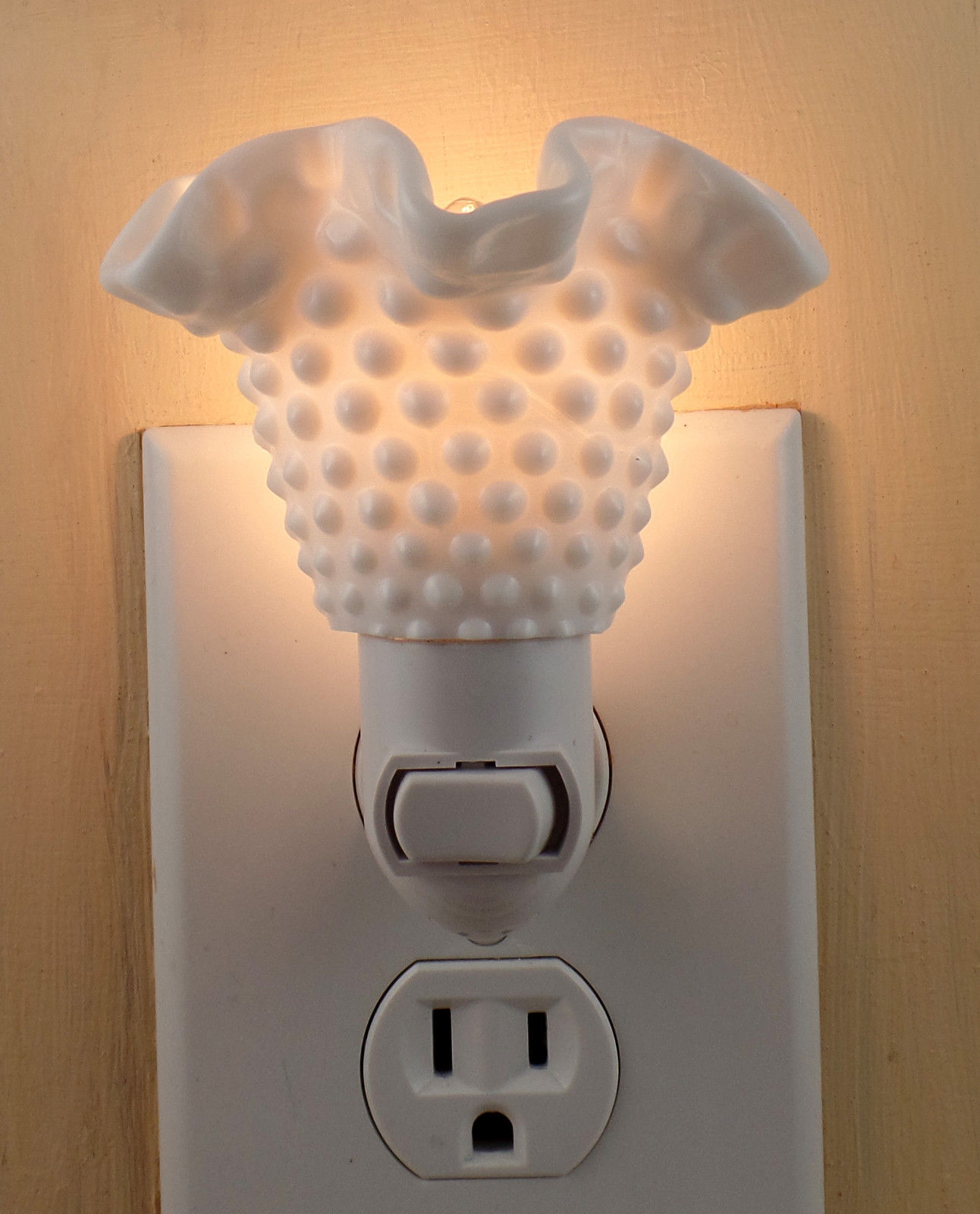 Fenton White Milk Glass Hobnail Ruffled Top Small Vase Custom Made Night Light