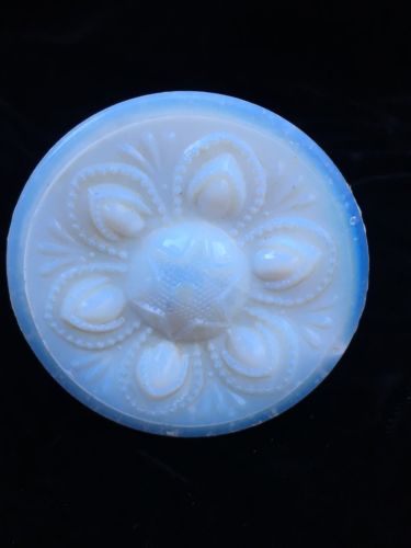 Title (ebay affiliate link): Pair Antique Opalescent Milk Glass Curtain Tiebacks Star Leaf Pattern