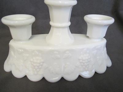 Vintage MILK GLASS Grape Pattern TRIPLE CANDLEHOLDER CANDELABRA vrw