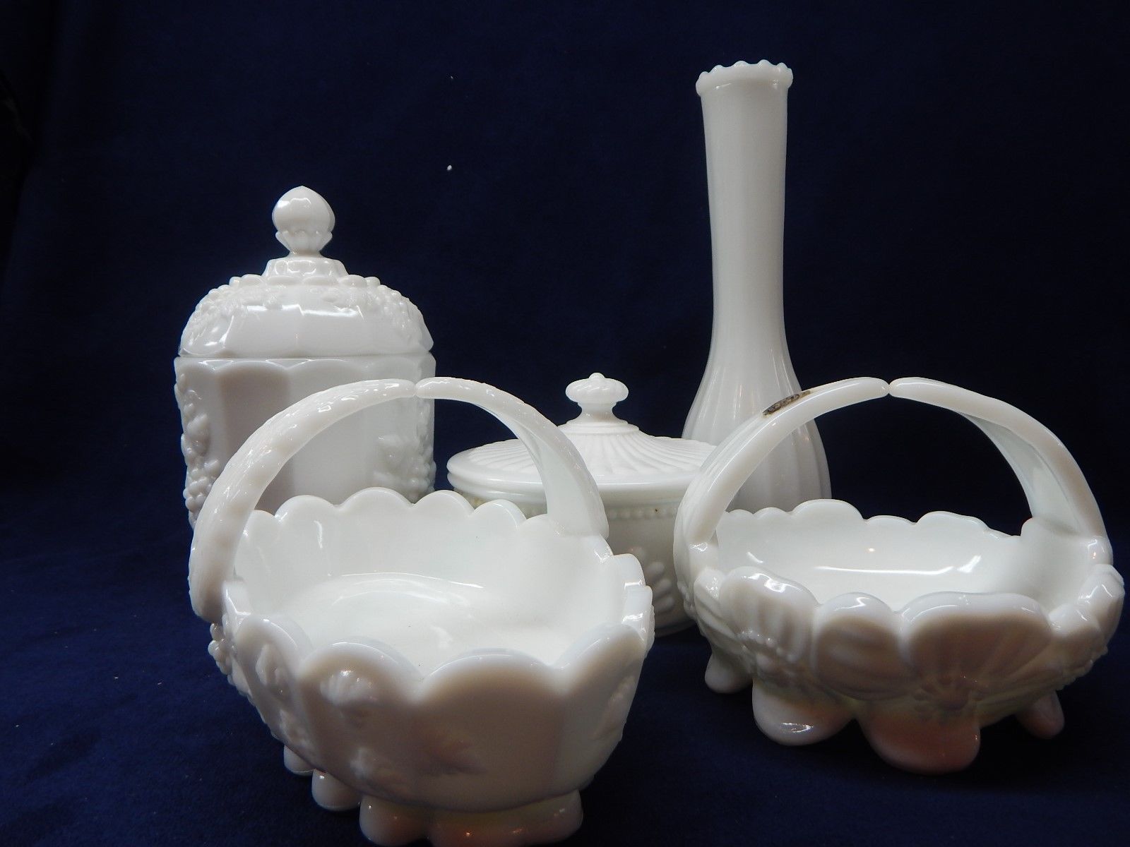 VINTAGE MILK GLASS LOT WESTMORELAND BASKETS