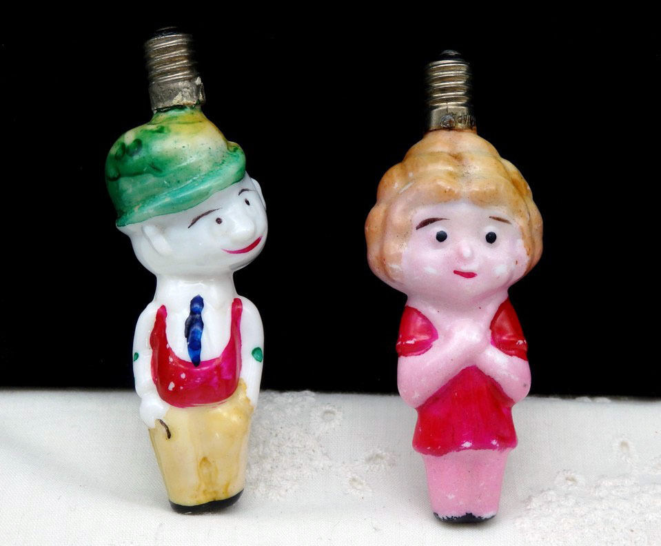 Vtg Painted Milk Glass Figural Girl Boy Christmas Tree Bulb 15V Japan NON-TESTED