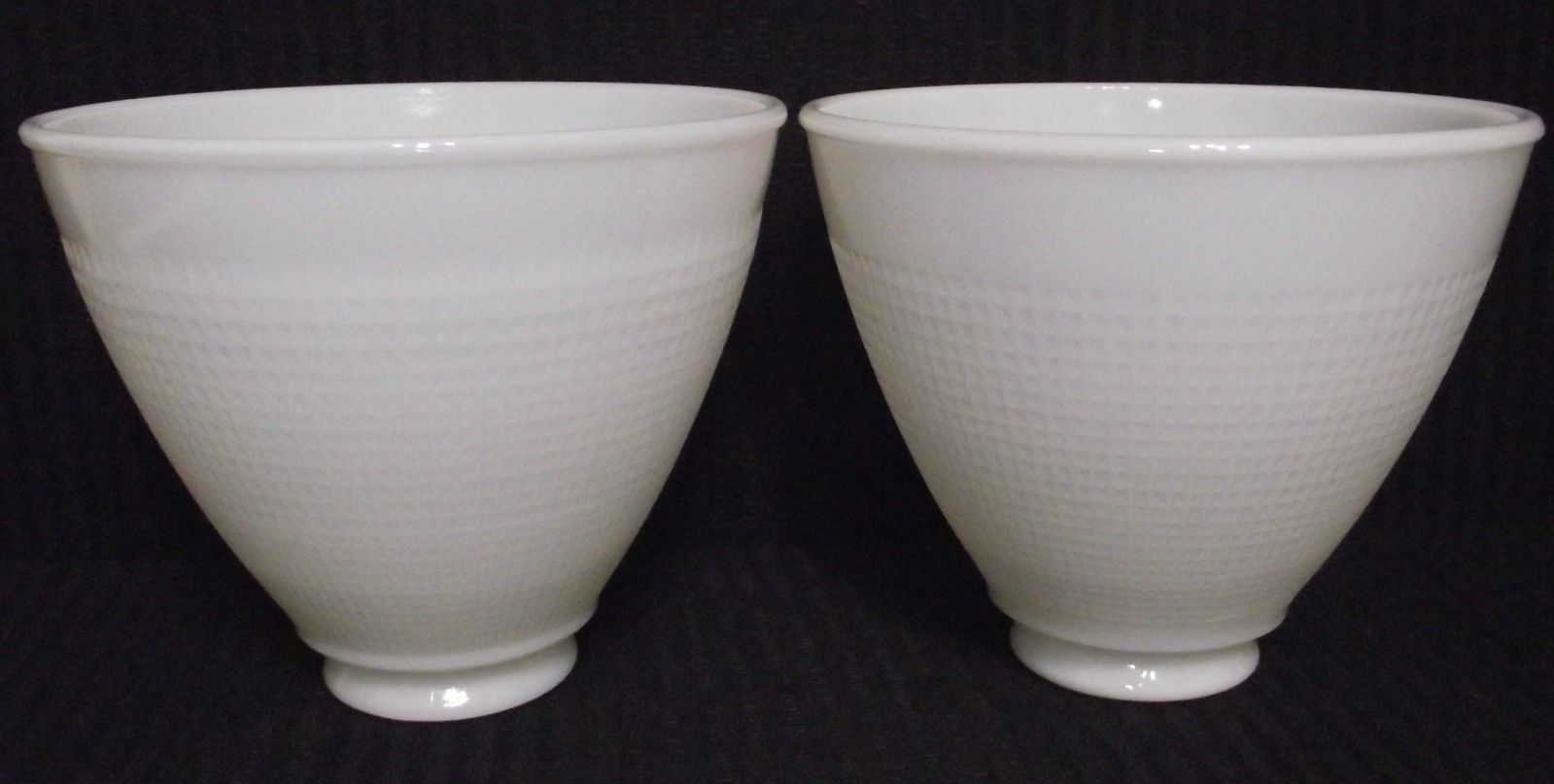 Pair Matching Vintage Corning Milk Glass Waffle Lamp Shades Diffusers #820090