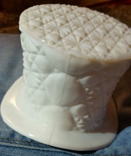 VINTAGE GLASS TOP HAT WHITE MILK GLASS DAISY & BUTTON