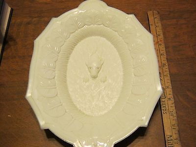 Title (ebay affiliate link): Antique white milk glass platter, fox in the grass chasing duck