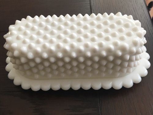 Vintage Hobnail Milk Glass Covered Butter Dish - RARE!
