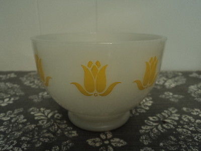 Title (ebay affiliate link): VINTAGE FIRE KING MILK GLASS COTTAGE CHEESE BOWL - YELLOW TULIPS