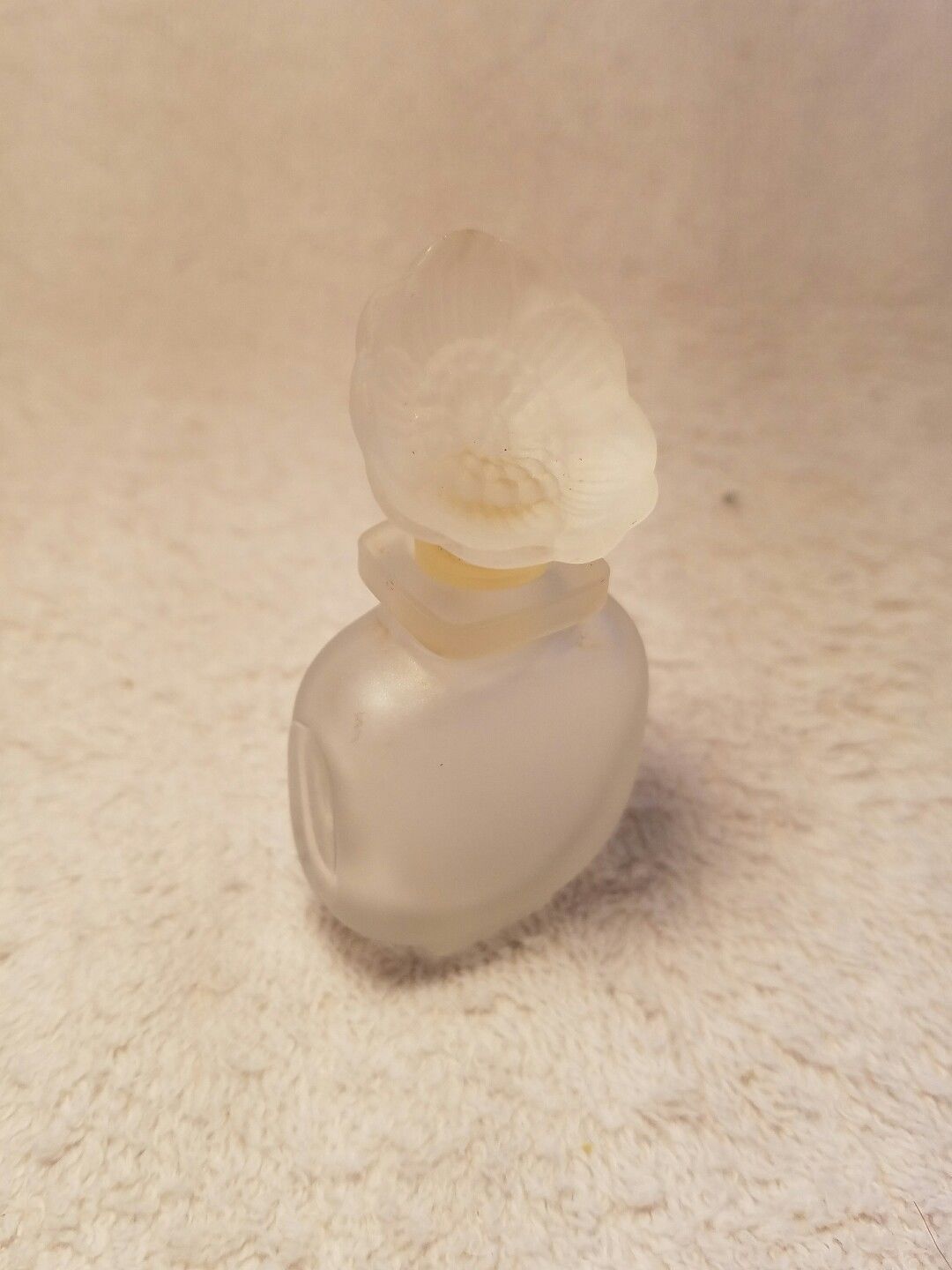Title (ebay affiliate link): Circa 1920's Art Deco Clear Glass Perfume Bottle & Frosted Glass Flower Stopper